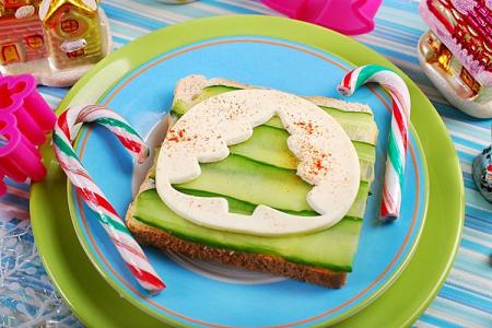 1. Coupez la croûte du pain de seigle, coupez-la en fines tranches, utilisez un emporte-pièce pour donner à la base du sandwich une belle étoile, chevron, poisson, triangle, etc.