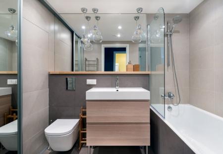 Si possible, envisagez d'installer une machine à laver dans votre cuisine ou votre couloir. Le bidet, en tant qu'appareil de plomberie séparé, peut être remplacé par une toilette multifonctionnelle avec douche flexible. Il existe également des cuvettes de toilettes écologiques avec un évier intégré - en en installant une, vous économiserez non seulement de l'espace, mais vous financerez également les factures de services publics.