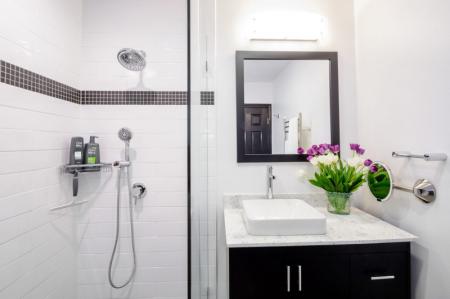 Si vous devez niveler fortement la base, remplacer la structure en plaques de plâtre ou masquer les communications, les plafonds tendus économisent littéralement de l'espace. Les toiles brillantes donnent toujours le même effet miroir. Et la série de projecteurs intégrés vous permet d'agrandir visuellement les murs et de remplir la pièce d'une lumière uniforme.