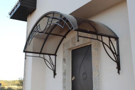 Le polycarbonate peut être cellulaire et monolithique - selon la forme et la taille de la visière que vous souhaitez. Il est flexible et peut être façonné sous différentes formes pour les auvents bouclés et en relief. Dans le même temps, il ne nécessite pas de cadre renforcé et ne crée pas de contraintes supplémentaires sur la façade ou les fondations.