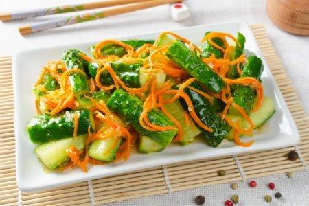 Tu auras besoin de: 500 g de concombres moyens, 3 gousses d'ail, 2 parapluies d'aneth, une pincée de sucre, 1 c. sel, 2 c. vinaigre, 1 cuillère à soupe. huile végétale.