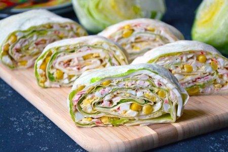 11. Rouleau de lavash avec bâtonnets de crabe et maïs