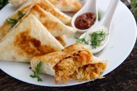 Préparation: Râper le chou, les carottes et les concombres sur une râpe grossière et assaisonner au goût. Badigeonner le pain pita de mayonnaise, étaler la garniture uniformément et rouler le rouleau. Frire au goût et à l'envie.