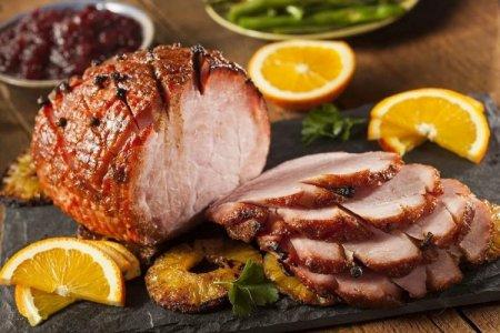 Préparation: Verser un jambon entier avec de l'eau, porter à ébullition et faire bouillir pendant une heure à feu doux. Couper la peau et saupoudrer uniformément les clous de girofle sur le porc. Couvrir la viande de miel et la mettre au four à 200 degrés pendant une demi-heure. Sortez pendant 15 minutes, saupoudrez de sucre en poudre et laissez encore refroidir sous du papier d'aluminium.