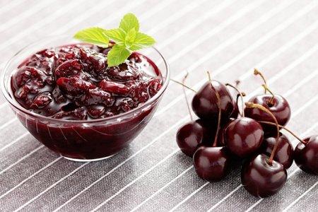 Préparation: Broyer les cerises avec un mixeur, ajouter le sucre, remuer et faire bouillir 10 minutes à feu moyen. Placez la confiture épaisse dans des bocaux stérilisés.