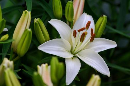 Le lis appartient aux fleurs longues en raison de la forme caractéristique des boutons allongés. Dans la seconde moitié de l'été, White Triumph fleurit avec de grandes fleurs blanc comme neige avec une teinte verdâtre.