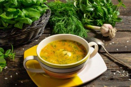 Préparation: Cuire le bouillon de la viande. Hacher les légumes et les herbes. Placer les champignons dans la casserole. Ajouter les pommes de terre après 10 minutes. Faire revenir les oignons et les carottes dans une poêle, ajouter la tomate, l'ail et les épices. Verser la friture dans le bouillon et faire bouillir pendant 5 minutes. Ajouter l'oseille, les herbes, les œufs et éteindre après ébullition.